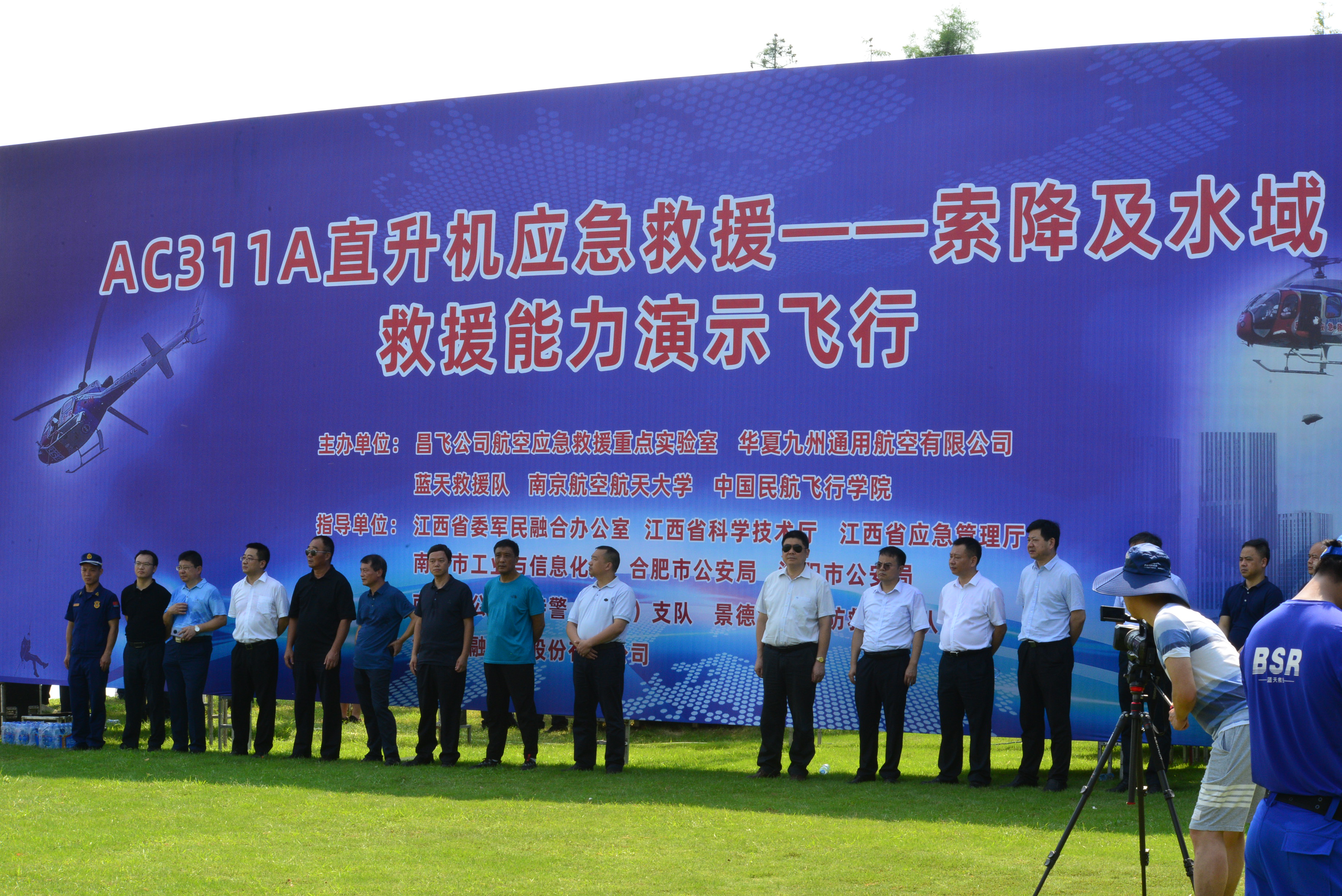 7月15日,由航空工业研制生产的AC311A直升机在中原九州通航瑶湖直升机基地开展了首次索降及水域应抢救援航行演练。本次演练由航空工业昌飞航空应抢救援重点实验室、中原九州通航、蓝天救援队、南京航空航天大学、中国民航航行学院团结开展。江西省委军民融合办、江西省应抢救援厅、江西省航空护林局、江西省科技厅、合肥市及洛阳市公安警航部分,南昌市特警支队、江西省景德镇市消防救援支队等单位相关向导和职员观摩演练。